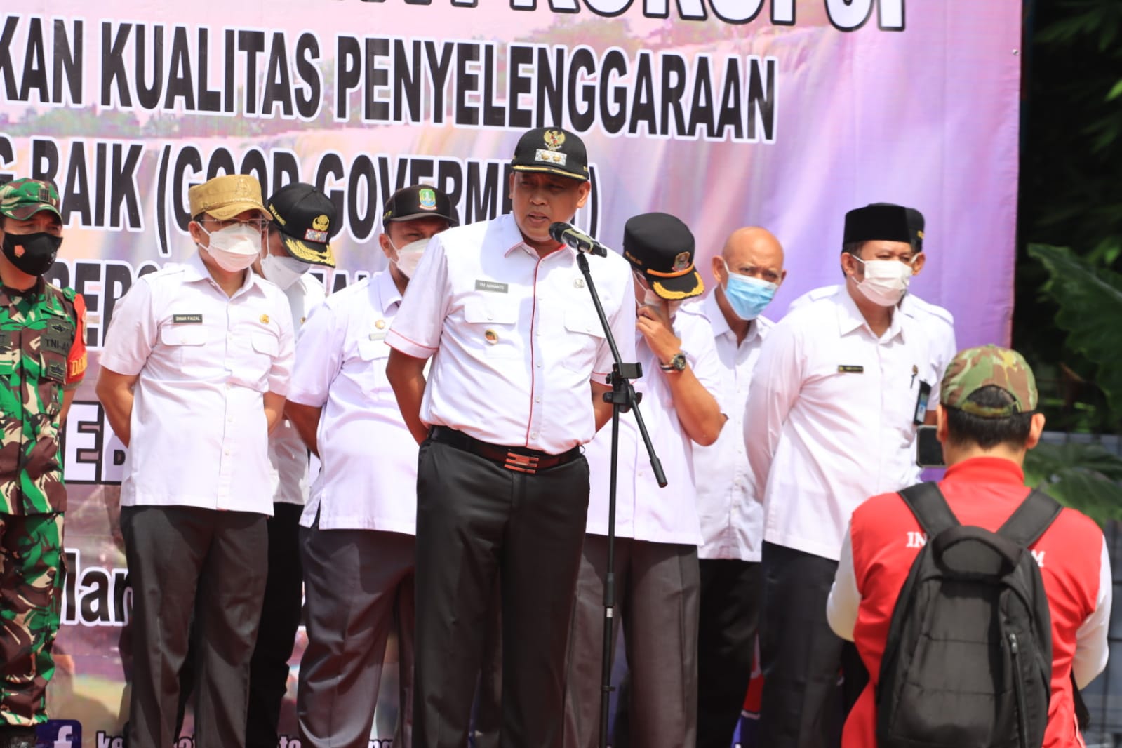 IMN NEWS, KOTA BEKASI – Pelaksana Tugas (Plt.) Wali Kota Bekasi Tri Adhianto menghadiri deklarasi komitmen anti korupsi dalam rangka meningkatkan kualitas penyelenggaraan pemerintahan yang baik (good government) dan pemerintahan yang bersih (clean government) bertempat di Kecamatan Bantargebang, Selasa (22/03/2022).