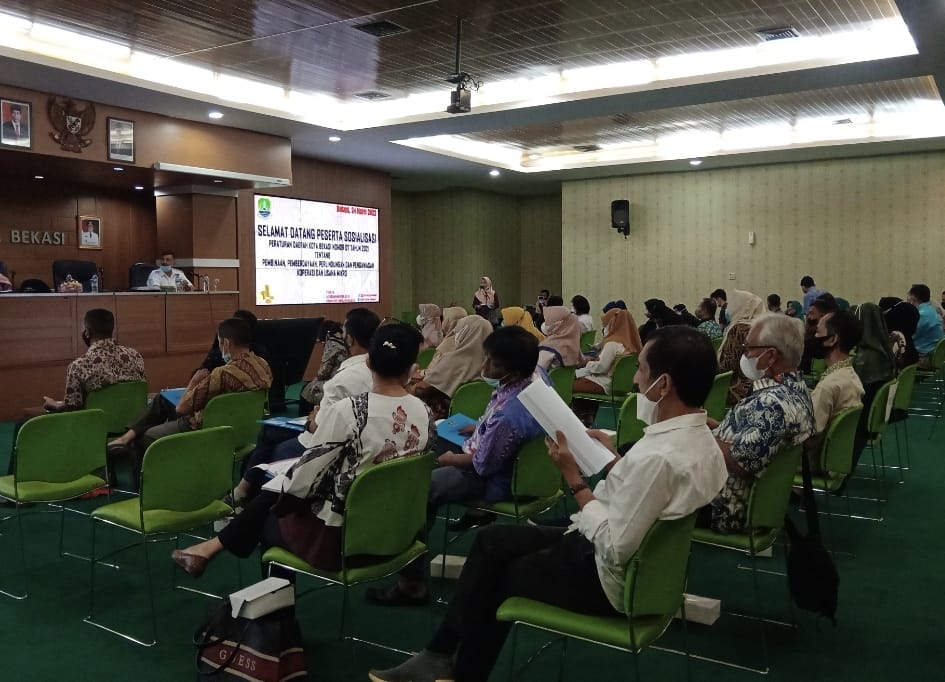 IMN NEWS, Kota Bekasi – Pengurus Koperasi dan para pelaku UMKM Kota Bekasi ikuti Sosialisasi Peraturan Daerah Nomor 07 Tahun 2021 Tentang Pembinaan Pemberdayaan, Perlindungan, dan Pengawasan Koperasi dan Usaha Mikro yang dilaksanakan di Aula Nonon Sonthanie Lt. 1 Plaza Pemkot Bekasi pada Kamis, 24 Maret 2022.