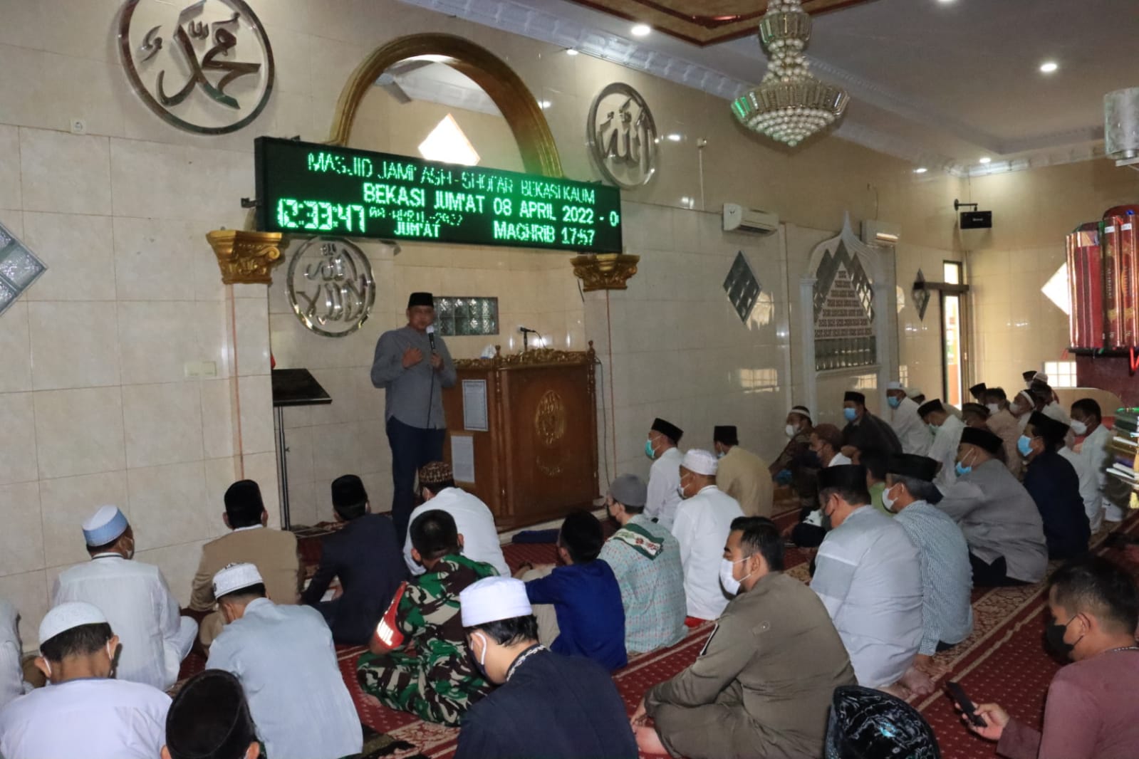 IMN News, Kota Bekasi – Ramadhan hari ke 6, Pelaksana Tugas (Plt.) Wali Kota Bekasi, Tri Adhianto melaksanakan shalat Jum’at keliling di Masjid Ash-Shofar RW 01 Kelurahan Bekasi Jaya, Kecamatan Bekasi Timur. Bersama Ketua DKM, H. Makbullah, Sekretaris Kecamatan Bekasi Timur, Mayasin, Lurah Bekasi Jaya, Ngadino serta Ketua RW 01 Kelurahan Bekasi Jaya, Wage Tirta. Khotib dan Imam pelaksanaan Shalat Jumat tersebut oleh Ketua DKM Masjid Agung Albarkah Kota Bekasi sekaligus Ketua Baznas Kota Bekasi, Ismail Hasyim.