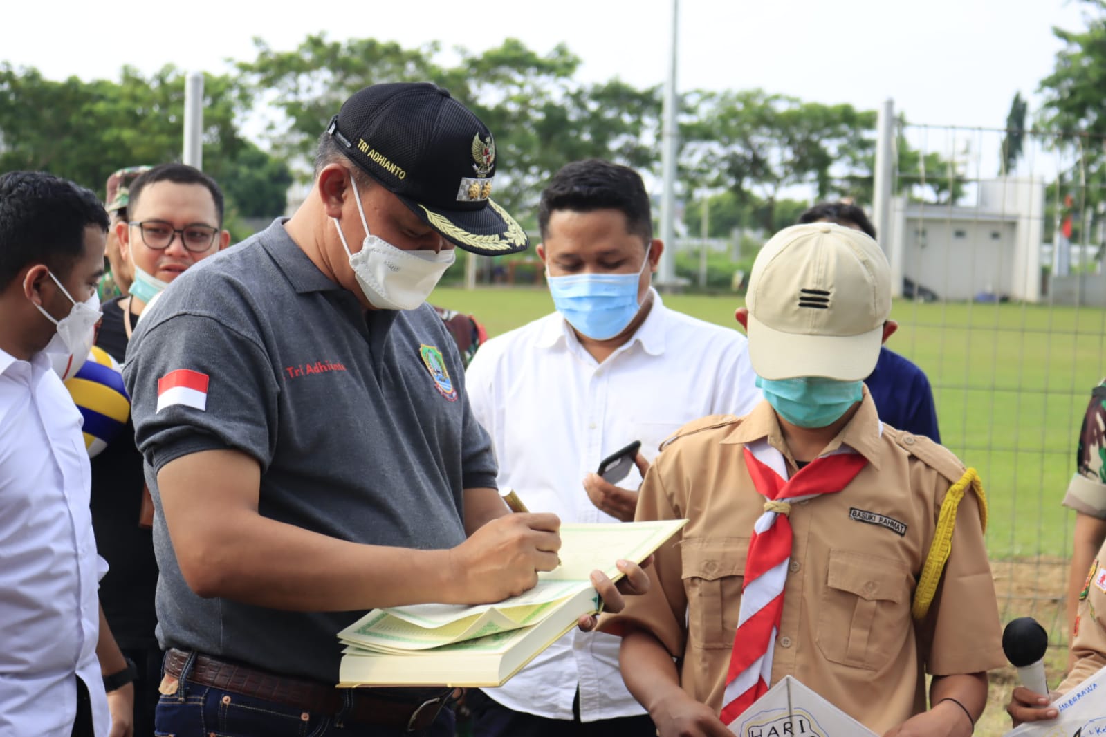 Pelaksana Tugas (Plt.) Wali Kota Bekasi, Tri Adhianto hadir bersama Plt. Ketua Penggerak PKK Kota Bekasi, Wiwiek Hargono yang didampingi oleh Kepala Kesbangpol Kota Bekasi, Cecep Suherlan. Dihadiri juga oleh Danrem Wijayakarta, Brigadir Jenderal TNI Yustinus Nono Yulianto, Anggota DPRD Kota Bekasi Fraksi PKS, Heri Purnomo.
