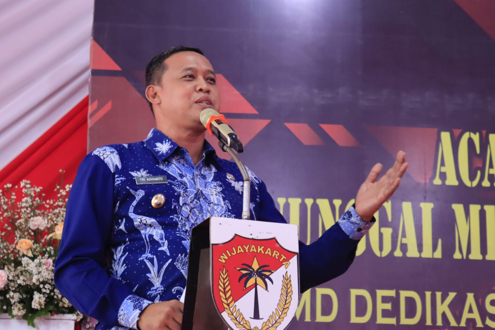 Tri Adhianto juga turut memberikan sambutan, dalam sambutannya Tri menyampaikan menyambut dengan sangat baik program TMMD, dari segi pengawasan, realisasi kegiatan, effesiensi waktu dan tenaga, semua dapat berjalan dengan baik.