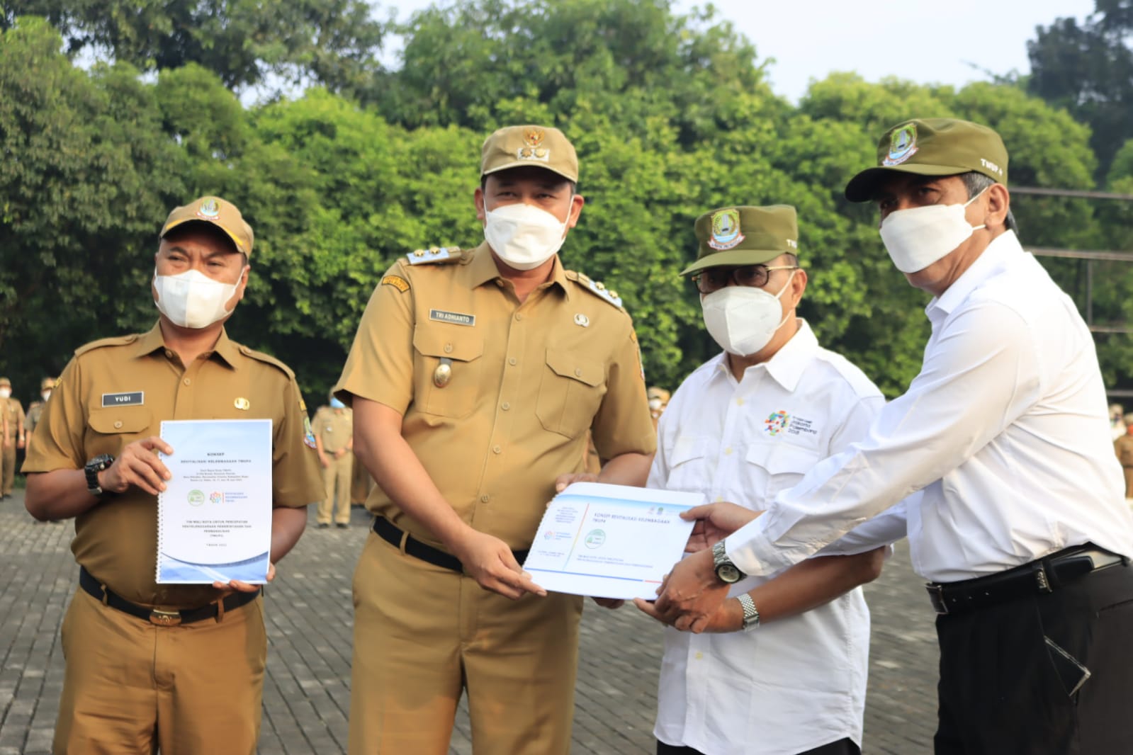 IMN NEWS, KOTA BEKASI – Pelaksana Tugas (Plt) Wali Kota Bekasi Tri Adhianto pimpin apel gabungan di Plaza Pemda Kota Bekasi, Senin (20/06).