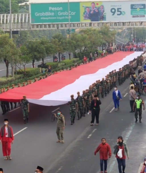 Acara puncak yang digelar dengan tema Pesona Nusantara Bekasi Keren di awali dengan kirab bendera raksasa Merah Putih dari pemkot menuju Stadion Patriot Chandrabhaga Kota Bekasi.