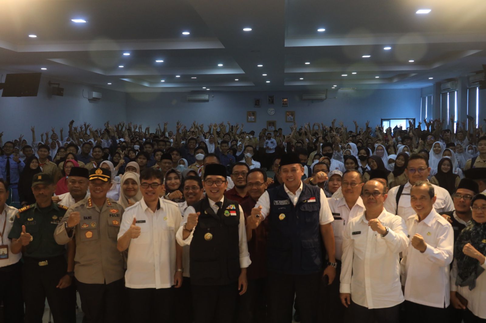 Kedatangan Gubernur Jawa Barat dan Plt. Wali Kota Bekasi disambut hangat oleh para perwakilan siswa/i SMA/SMK se- Kota Bekasi yang hadir disana untuk menyimak arahan dan materi yang akan disampaikan.