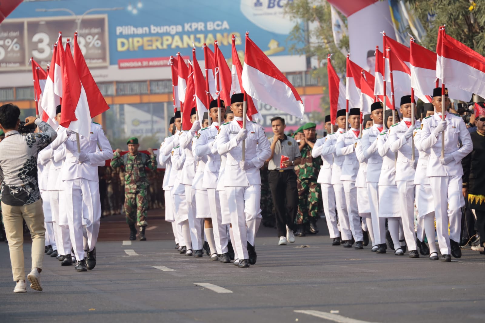 INFO MEDIA Nasional, Kota Bekasi – Dalam rangka puncak perayaan HUT ke-78 Republik Indonesia, Pemerintah Kota Bekasi melalui Dinas Pariwisata dan Kebudayaan menggelar _Karnaval Pesona Nusantara Bekasi Keren 2023_ pada Minggu (20/08/2023). Kegiatan karnaval diawali dengan arak-arakan Plt. Wali Kota beserta istri dengan menggunakan kereta kencana khas solo.