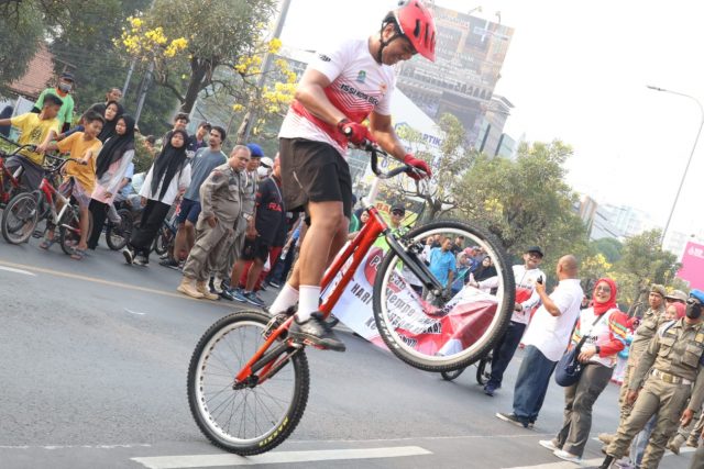 Acara yang diiringi dengan pawai diisi dengan para atlet cabang olahraga yang tergabung di KONI Kota Bekasi memadati area Car Free Day pada akhir pekan ini, tidak hanya cabang olahraga tergabung juga para anggota dari KORMI Kota Bekasi dengan ajakan senam untuk para hadirin.