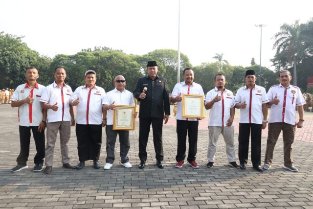 INFO MEDIA Nasional , Kota Bekasi – Apel pada hari ini, Wali Kota Bekasi, Tri Adhianto yang juga sebagai Ketua KONI Kota Bekasi menerima surat keputusan dari Ketua KONI Pusat mengenai penunjukan Kota Bekasi sebagai tuan rumah Pekan Olahraga Bela Diri Nasional Tahun 2023.